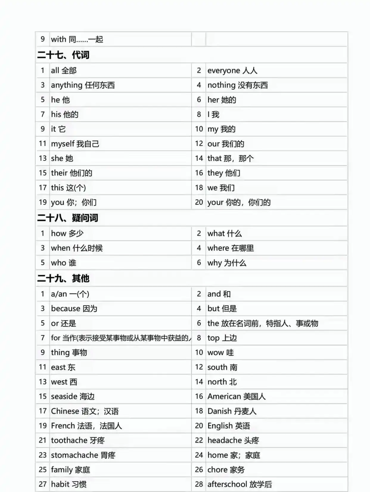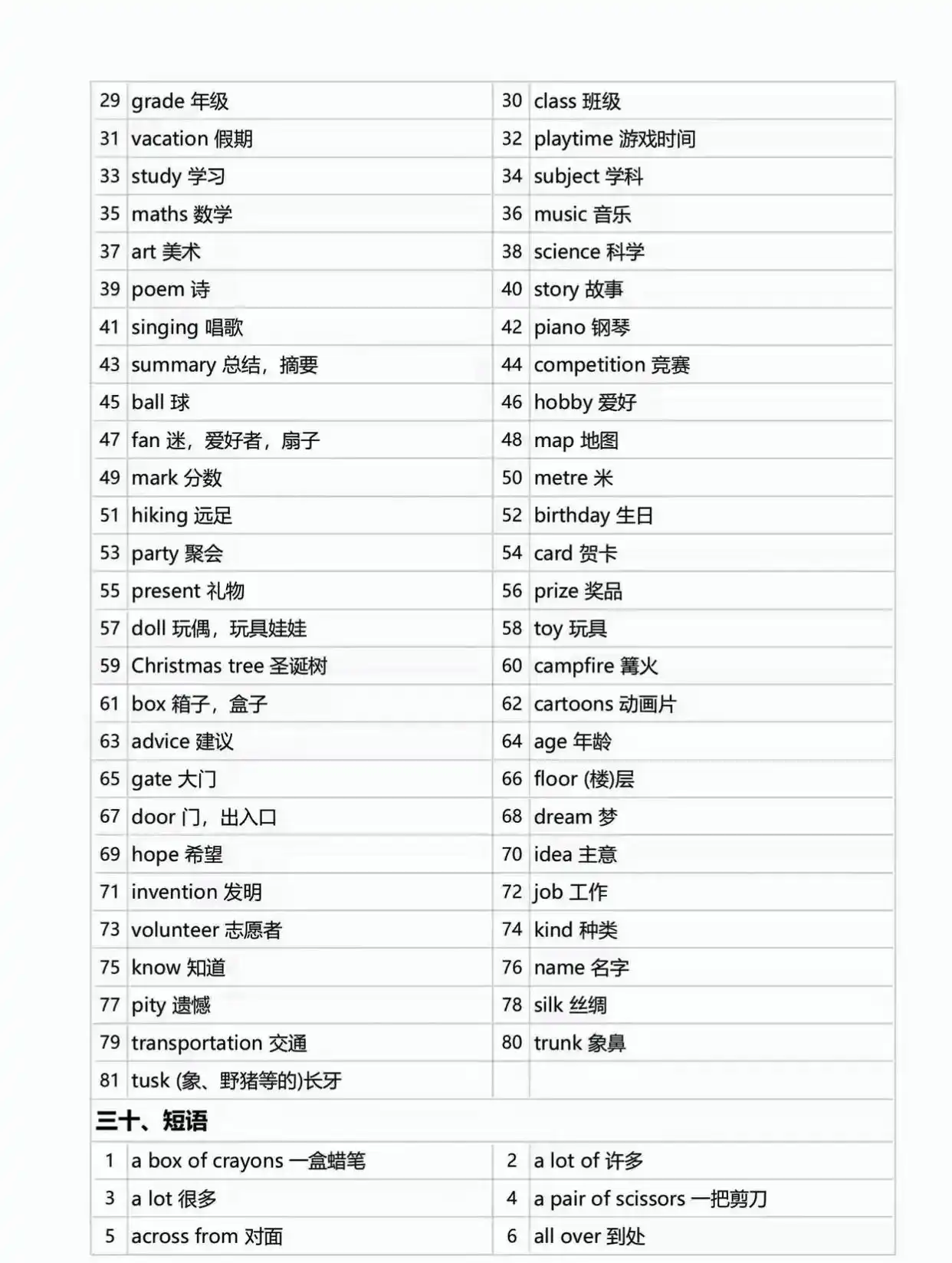 上海牛津版1-5年级单词表 四